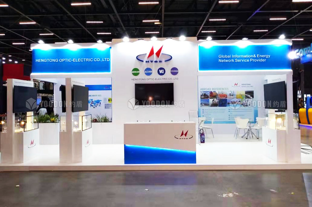 本屆展會約盾展覽為亨通光電提供了展位設計搭建服務,亨通光電,是服務于光纖光網和電力電網及網絡建設運營、金融投資、新能源、新材料等多元領域的國家級創新企業,中國光纖網絡、電力電網領域規模最大的系統集成商與網絡服務商,全球光纖通信前三強。